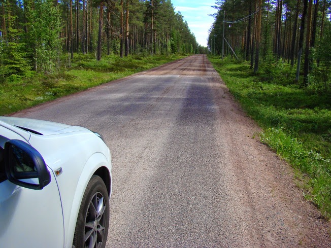 Чтобы не было скучно, возвращались другой дорогой. Швеция пока не оставила в моем сердце глубокой занозы. Первое знакомство на пути туда отпечаталось равнинами, полями с травой, и травой, свернутой в рулоны, а так же автострадами с регулярными развязками. Второе знакомство на пути обратно лугами уже не баловало, зато душило елками. Пожалуй, единственный интересный участок пути у нас был по грунтовой дороге в лесной глуши, хоть немного посмотрели на «дома дровосеков», а чем там еще заниматься?