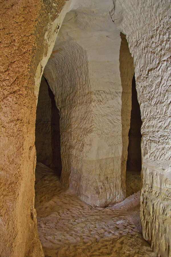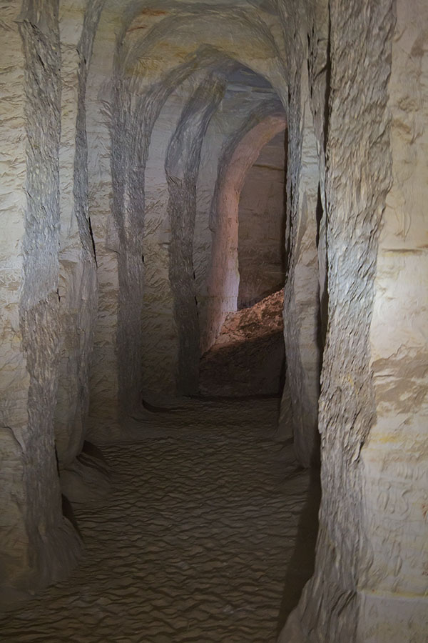 Интересен способ, которым выкапывались эти пещеры. Все сделано вручную, сперва выкапывались обычные, низенькие проходы, затем землекопы углублялись вглубь (в смысле не вглубь горы, а ниже по вертикали. типа уровень пола опускали). Так и получились эти колоны.