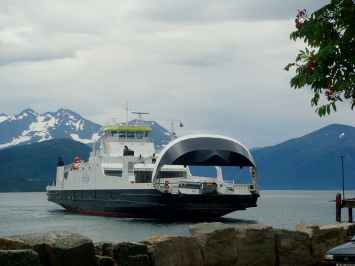 15-10. 3435 км. Паром как трамвай, просто и со вкусом. 120 крон. Даже чаю не успеть попить. Линии Афарне-Солснес приветствуют вас. На маленьком пароме 20 минут, а в обход больше часа.