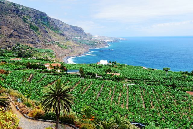 Из Пуэрто-де-ла-Крус, где мы жили, и совершались ежедневные вылазки. Уже первая смотровая площадка с обрывистыми скалистыми берегами и банановыми плантациями не могла не порадовать: