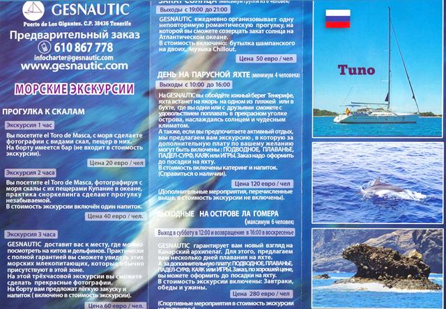 Выход через пять минут, мы вдвоем. Ну, и капитан, конечно. Мы даже не поверили. Три часа на яхте в океане вдвоем! За 130 евро! Но это действительно так, вот буклет – на русском: