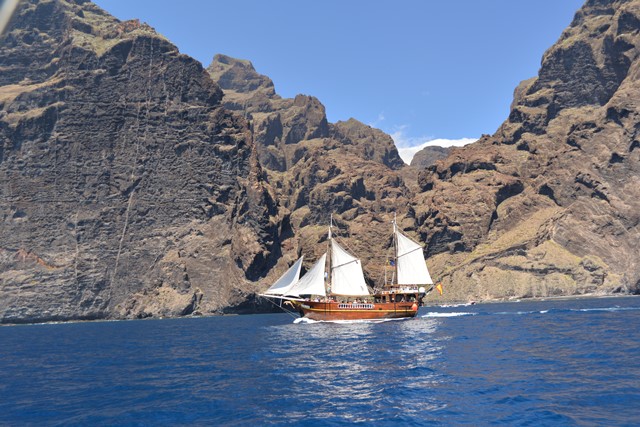 Да и имеющийся путеводитель по Канарам (серия «Полиглот») заклинал: «Лос-Гигантес надо осматривать с моря». Ну, с моря так с моря. Спустились вниз по указателям до порта, въехали за шлагбаум на платную парковку. Прямо на берегу стоят будочки, как у нас в Лазаревском каком-нибудь, типа «Морские экскурсии». Подходим к ближайшей: выход в море через три часа. Идем к следующей. Там парень отлично говорит по-русски, но мы его вначале даже не поняли.