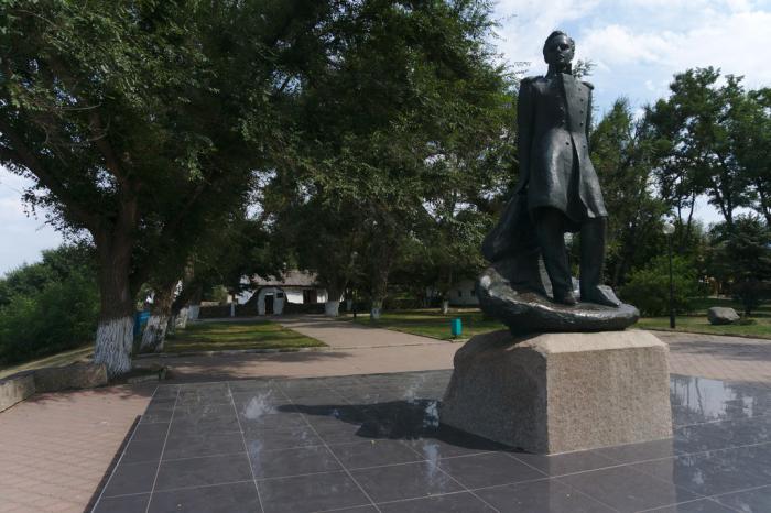 Из Сенного дорога привела нас в городок Тамань. Это место связано с именем Лермонтова и ему посвящен довольно уютный сквер на крутом берегу моря.