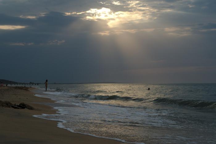 Оно отделено от моря узкой полосой центрального пляжа. Грязь, как утверждается, целебная, и народ активно мажется. Мы что-то не стали.