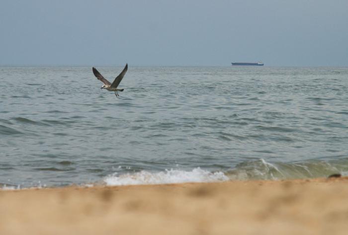 Пляж — песок и мелкий ракушечник. Волны выносят на берег и целые ракушки.