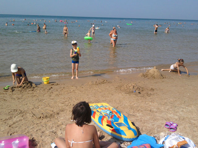 Море – не «семейное», почти сразу начинается мутная глубина. Берег – песок вперемежку с мелкой ракушкой. Ходить босиком – режется, ходить в сланцах – набивается под ступни. В общем, удовольствие так себе. Не стали тратить время, прыг в машину и – на Анапу. В Интернете нашли через станицы. Вкратце: по М4 из Кущевской сворачиваем на станицы и дальше – по дороге между станицами. Дорога очень чистая, очень быстрая и очень интересная. Впервые в жизни увидели поля зрелых желтых подсолнухов, увидели как арбузы растут, как лотосы цветут (в Старонижестеблиевской), прикупили фруктов на базаре в Варениковской – и еще много чего интересного было.