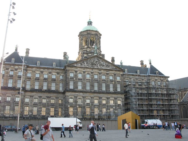 — это сердце Амстердама. За годы существования площадь видела много исторических драм площади можно. Центральным строением площади является королевский дворец (Koninklijk Paleis) с классическим фасадом и изящными скульптурами, изначально использовавшийся как здание муниципалитета.
