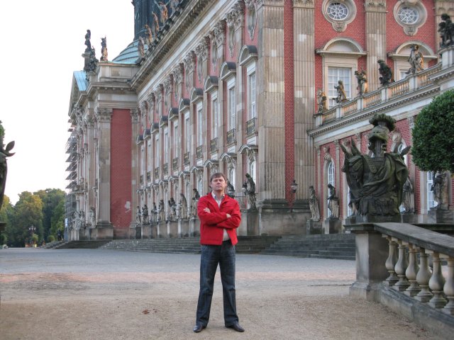 частный пансион «Mark Brandenburg». За 78 евро нас разместили в прекрасной комнате, со всеми удобствами. Очень уютно и комфортно. Хозяин очень хорошо говорит по русский, рассказал, что в Советские времена долго жил и работал в Советском Союзе, вспоминал с теплом и даже с некоторой ностальгией. Устроившись в номере, поехали осматривать город, информации о нем не было ни какой, попросили у хозяина отеля карту, где он отметил нам наиболее интересные места для посещения. Сам город, по сравнению с Баварскими уютный городами и деревеньками особо не понравился. Но по двору погуляли с удовольствием. Очень красивое место. Красивый дворец, красивый ухоженный парк.