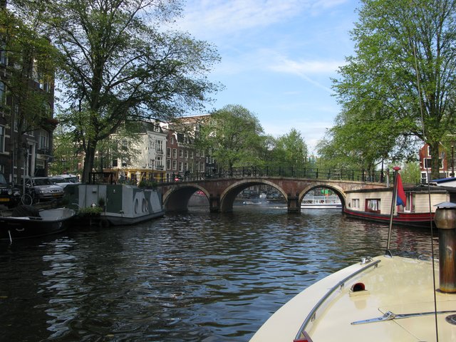 Немецкие автобаны прекрасные. Скорость 140-150 км\ч. В 15-40 пересекли границу Нидерландов, поняли только по смене дорожных знаков и по ненавязчивому знакомству с местно полицией. А происходило это знакомство очень интересно. Сначала мы увидели на обочине полицейского на мотоцикле, а он заметил нас, за тем мы поняли, что он движется за нами, доехав таким образом до небольшого съезда с дороги, на мотоцикле загорелась табличка, даже мы, не знающие языка, поняли, что нас просят съехать с трассы. Мы съехали с трассы в небольшой загончик, полицейский подъехал к нам, спросил паспорта, грин-карту, спросил на английском куда мы едем, мы честно признались, что путь держим в Амстердам, полицейский отдал есть, попрощался и уехал.