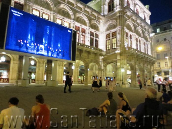 На вечер у меня был запланирован ни много, ни мало выход в Венскую оперу. Еще в Москве я прочитала в какой-то газете, что на здании Венского оперного театра установлен огромный дисплей, на котором ведется прямая трансляция спектаклей. Возможно, это и было главной причиной, по которой я решила отметить свой день рожденья в Вене и выбрала этот отель, который так и называется «900 м от Оперы». Я не была уверена на все 100%, что будет трансляция, поэтому у меня был запасной вариант. Просто посидеть в летнем кафе с венским шницелем.