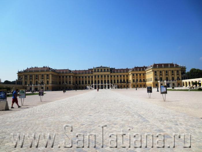 Встала я не очень рано и пошла завтракать. Удивил роскошный шведский стол. Богатый выбор салатов и горячего. Даже арбуз и дыня. Свежайшая выпечка. За завтраком услышала русскую речь и увидела семью с 2 детьми. Они мне очень подробно рассказали, что уже успели посмотреть и как туда добраться. Они собирались ехать в Шёнбрун, которому надо было посвятить целый день. Это сподвигло меня тоже поехать туда. Нужно было проехать на метро несколько остановок с одной пересадкой.