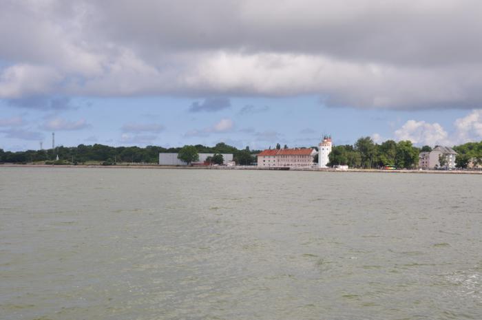 Паром из Балтийска на Балтийскую косу ходит раз в два часа, к пристани мы приехали минут за десять до ближайшего рейса. Решаем бросить машину на берегу и переправляться налегке. Вся переправа занимает минут пятнадцать.