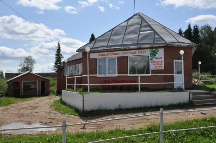 Очаг еды в Удмурдских лесах. Салат, борщ, гречка с отбивной, стакан сока и три корочки хлеба — 108 рублей.