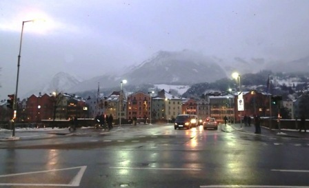 После обеда двинули далее на Инсбрук. Пошёл снег, быстро стемнело… дорога стала похуже, скорость помедленнее, но мы всё равно уверенно успевали ко времени заселения в апартаменты…