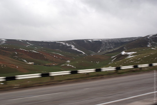 Усталые но довольные мы двинулись дальше. Наши друзья–бандиты из любезности или из трусости таки довезли нас до границы. С дороги открывался потрясающий вид на горы за горизонтом.