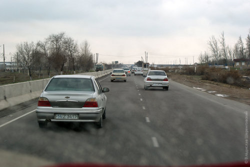 Уточнив у наших знакомых, что ближайшая заправка в принципе находится в пределах досягаемости, мы тронулись дальше. По мере приближения к населенному пункту, движение на дорогах становилось оживленнее. Нас окружали одни ДЭУ. Узбекистан — страна сборщик корейского автопрома.