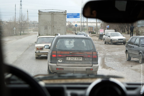 Встав с утра пораньше, прошли таможню почти без проблем, потратили только время на таможне со стороны Казахстана, которые прикопались к болтикам на торпеде в машине. Видите ли, видно, что они откручивались когда-то. Разъяснения, что магнитолу менял штатную — не помогли. Они были уверены что в Узбекистане нам их открутили, засунули туда мешок героина и закрутили. Слава богу, раскручивать не стали. Просто телескопическую камеру в воздуховод засунули (как у гастроэнтеролога такая).