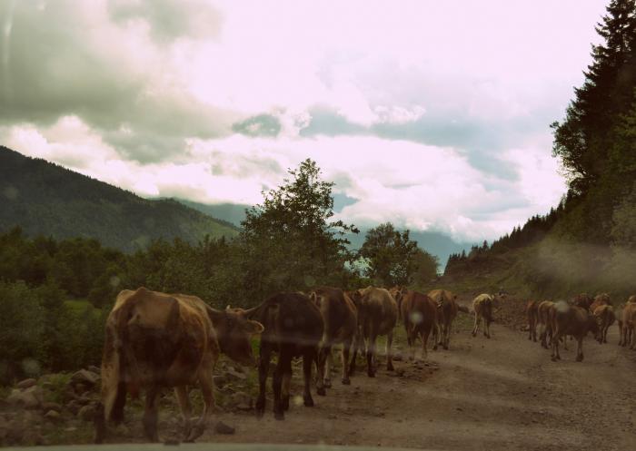 У нас была удивительная дорога от Вардзиа до Гонио, видимо спасибо навигатору, т.к. он повез нас по серпантину и бездорожью через горы, вместо асфальтированной автомагистрали, но никто об этом не жалеет. Одна из самых красивых дорог, с водопадами, речками, коровами, которые ходят там везде. Периодически на нас с удивлением смотрели местные, номера то наши, а они в шоке, что «мы» и сюда приперлись)))