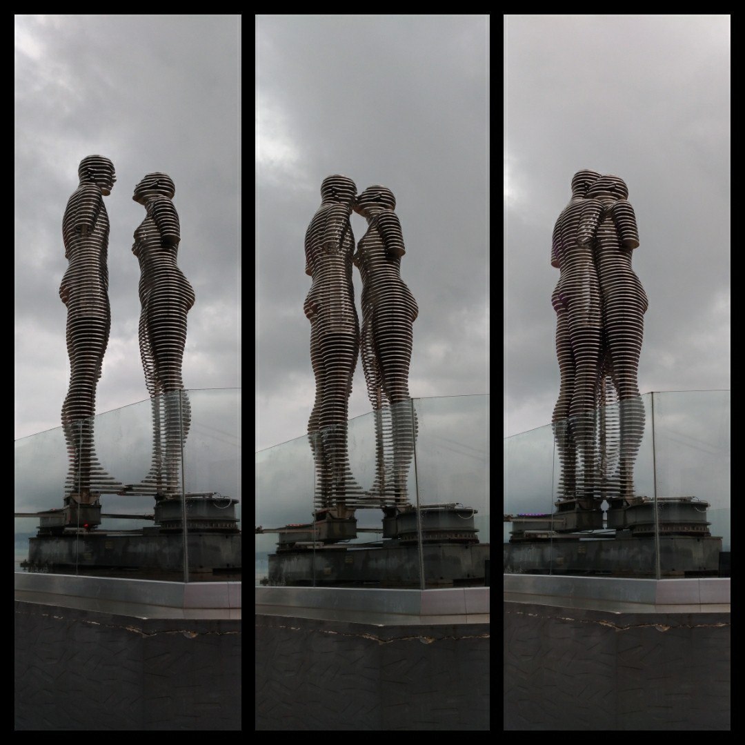 Спустились, ливанул дождь, но…мы решили все-таки прогуляться по набережной. Кстати, местных рыбаков ничего не смущает, дождь, ветрище. Мы увидели башню Алфавит, произведение искусства «Али и Нино», колесо обозрения и дальше нас смыло…)))