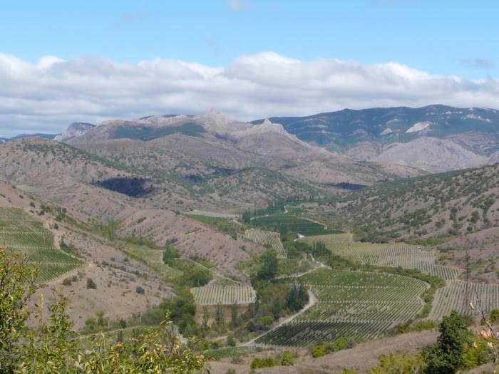 Сразу начался степной Крым с курганами скифов. Постепенно степи перешли в холмистую местность, а потом и невысокие горы появились. Проехали через Коктебель, остановились в Курортном съесть чебуреков, и двинулись дальше.