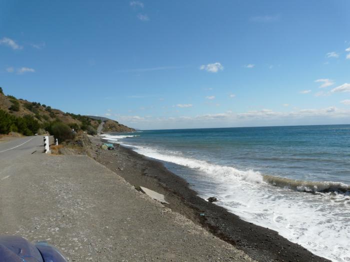 Вот такая дорога — то забираясь в горы, то резко спускаясь к самой кромке моря.