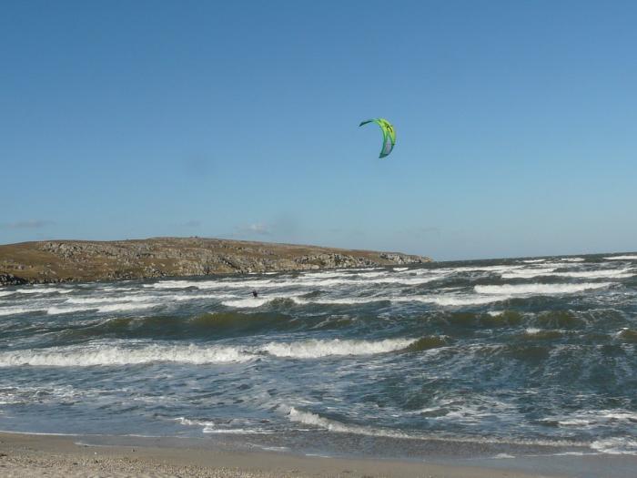 А вот и Казантипский залив. Ветер не меньше 25 м/сек! Вот на досках народ и оттягивается!