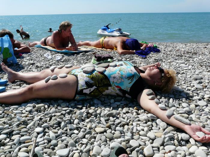 И вот начали искать ночлег. Ну что я вам скажу — приютить на 1-2 ночи никто не горит желанием, даже в сентябре в конце сезона, казалось бы. Вот что предлагали за 250 гривен — «комната с плазмой, посмотрим?», — предложил мужчина неопределенного возраста и неопределенной ориентации. ОЙ! — подумала я, вспомнив химическое образование.Но это оказался телевизор с плазменным экраном. «А остальное?», — спросила я мужчину, рекламировавшего «комнату с плазмой». Пошли смотреть. И увидели одноэтажный домик, собранный из множества каморок, в каждую из которых вела отдельная дверь.Туалет как-то хитро был присобачен сбоку, а душ — прямо во дворе картонная коробушка с баком для воды сверху, нагреваемым солнцем.А как же «комната с плазмой»?! Оказалось, что комната как комната, ну очень маленькая, правда. НО! совсем без окна. И, закрыв дверь на ночь, ты оказываешься уже не в комнате с плазмой, а в простенькой такой душегубке.Кислород-то в каморке кончится быстро, и вечный сон гарантирован… А дверь открывать боязно — мимо проходит дорожка в туалет.Вот так!