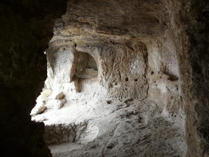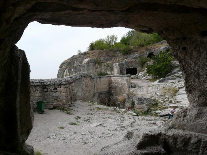 В Крыму это не единственное место, где в средние века города строились подобным типом — пещеры расширялись для хозпостроек, а вынимаемый камень шел на постройку домов сверху пещеры.