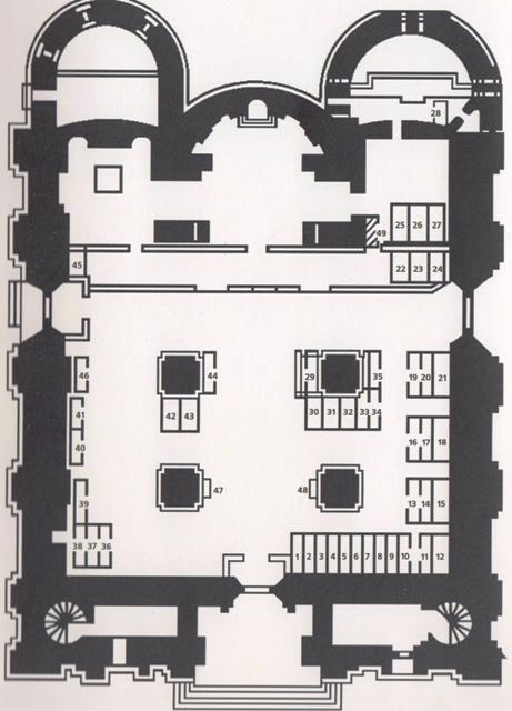 Фотографировать внутри нельзя, поэтому ограничусь схемой собора и списком захороненных в соборе.