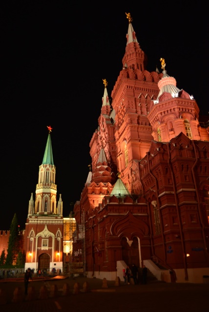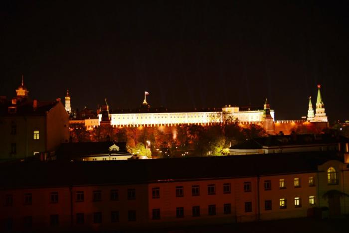 Вечер прошел в восторге от того, как лучи прожекторов разрезают небо над Кремлем (на фотографии они почти не заметны, но они были – можете поверить!).