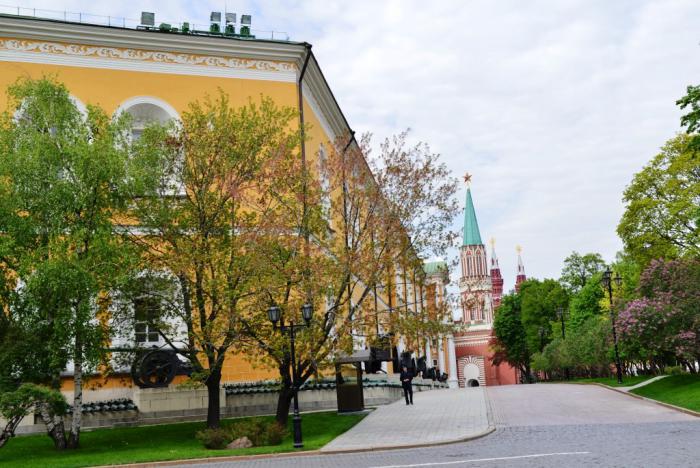 Чтобы попасть на территорию Кремля, надо пройти через стойку металлоискателя перед Боровицкими воротами. Люди в погонах строго, но вежливо интересуются, куда надо.