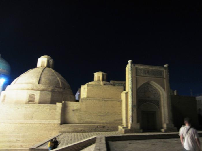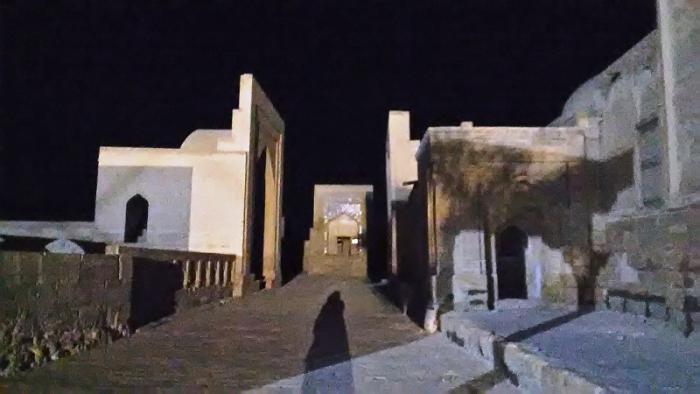 А после отдыха на озере мы приехали к некрополю Чор-Бакр. Время было 19.00, но уже стемнело. Нас встретил священнослужитель этого некрополя — пожилой узбек. Он уже уходил, но предложил нам экскурсию, мы отказались, так как было поздно, чтобы не обременять пожилого человека. Он посоветовал нам спокойно пройтись, прогуляться по некрополю, а после этого предложил нам зайти к нему в гости. Он очень активно и дружелюбно приглашал нас. Мы спокойно прошлись по некрополю. Но пойти в гости из-за позднего времени все же не решились.