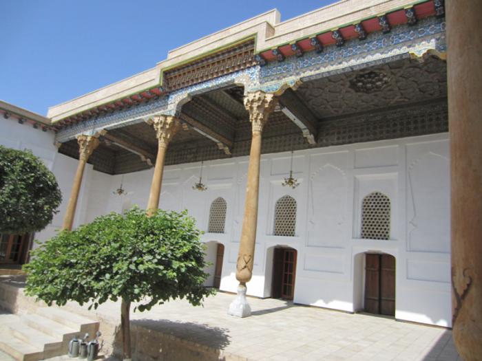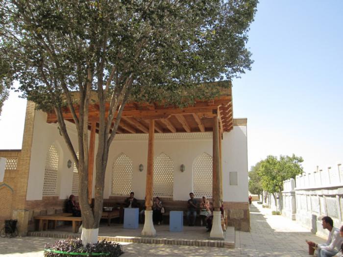 Айван на деревянных колоннах, где находилась усыпальница Шейбанидов. Айваны были воссозданы в 2003 году.