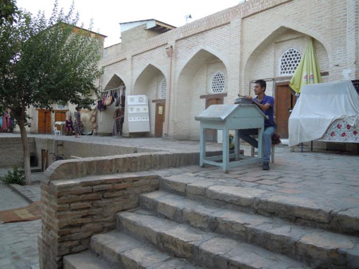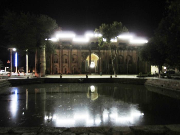 Рядом с комплексом Пой Калян находится тоже старое здание, которое когда-то было библиотекой, как подсказал нам мужчина, который когда-то служил в Архангельской области в армии. Это здание выходит круглым куполом на площадь Регистан.