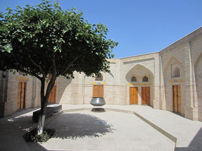 Вход в медресе «ушло под тротуар». Здание медресе было возведено в 1884 году. В настоящее время в здании медресе находится Музей истории городища «Варахша», открытый в 1995 году. В музее собрана экспозиция, рассказывающая о Варахше – резиденции эмиров Бухары, расположенной в 40 километров на северо-запад от города.
