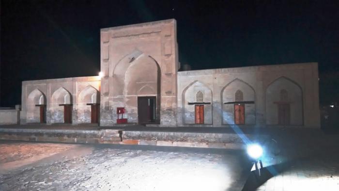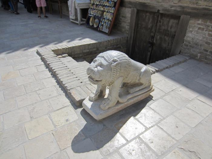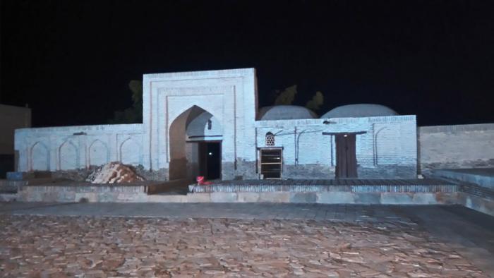Сейчас сардоба находится напротив портала караван-сарая, через дорогу. Построена она была в XIV веке.
