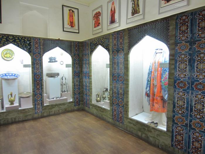 Эти помещения музея когда-то были гостиной. «Гостиная Рахимхана. Бухара, середина XVIII века. В этом помещении на золотые и серебряные кружочки монет наносился чекан».