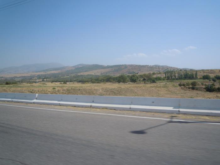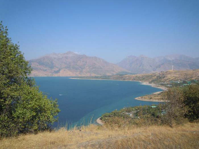 Чарвакское водохранилище находится в горах, поэтому горы вокруг трассы.