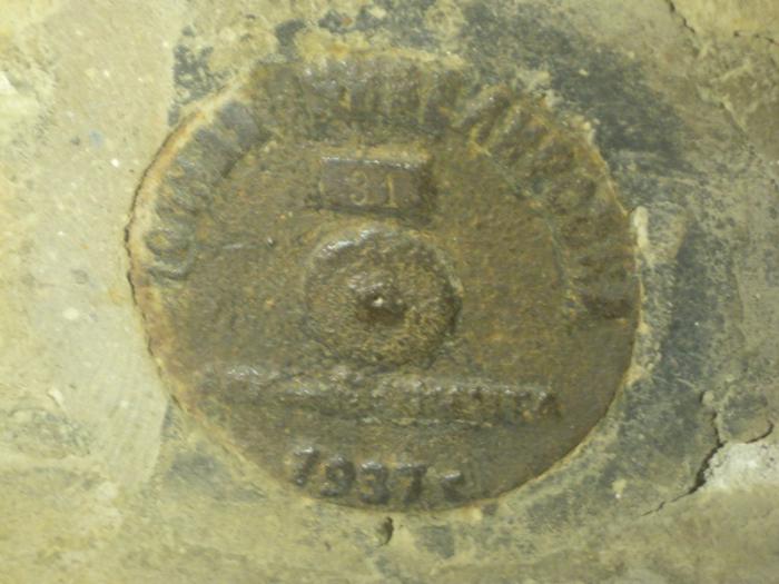 Мавзолей над могилой Зайниддина строился несколько раз, первое капитальное здание воздвиг в 1390 году Тамерлан, в Ташкенте заболевший и потому искавший благословения духовных отцов. Следующий мавзолей построили в 16 веке, но его нынешний облик, в том числе вся верхняя часть — результат капитального ремонта, проведённого в 1920-21 годах, возможно не без помощи русских архитекторов. А вот эта «печать» говорит о том, что последние работы проводились уже в 1937 году. Этот медальон, впечатанный в стену, показал нам смотритель кладбища, он проводил нас к мавзолею.