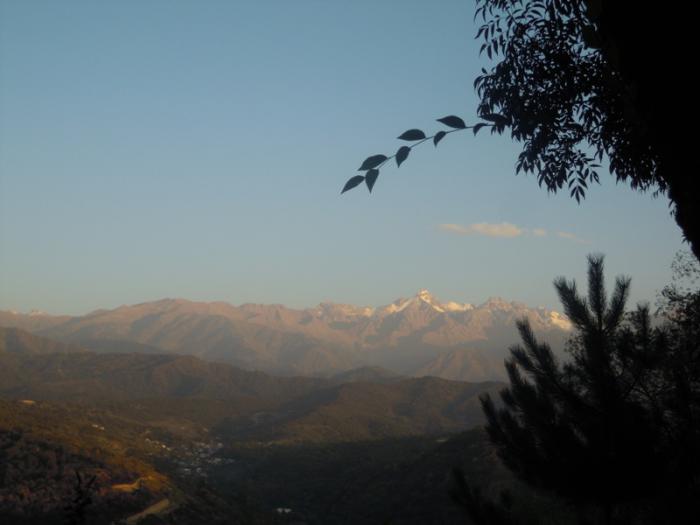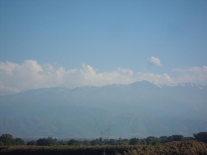 И горы до облаков. В окрестностях Алма-Аты такие горы красивые, прямо «классические», со снежными «шапками»!