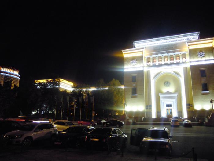 Мы нашли старое здание Казахского драматического театра, причем с трудом.