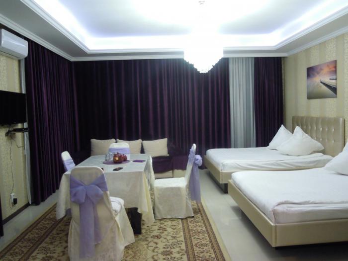 1.09.2018 г. К 23.00 были в городе Тараз, только с помощью таксиста нашли отель, забронированный ранее через Booking, сами сколько не ездили, сколько нам не подсказывали, никак найти не могли. Пришли в отель, номер нам предоставили дороже, чем мы бронировали, но, когда мы его посмотрели, сразу согласились. Вот такой номер стоил нам 2200 рублей нашими деньгами.