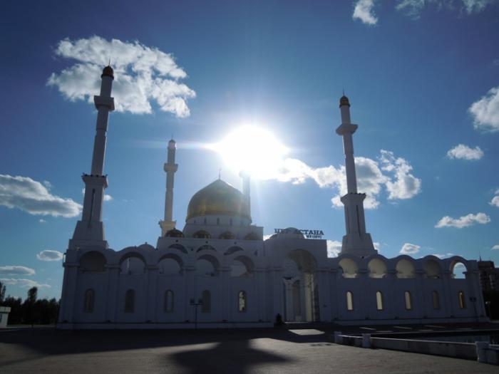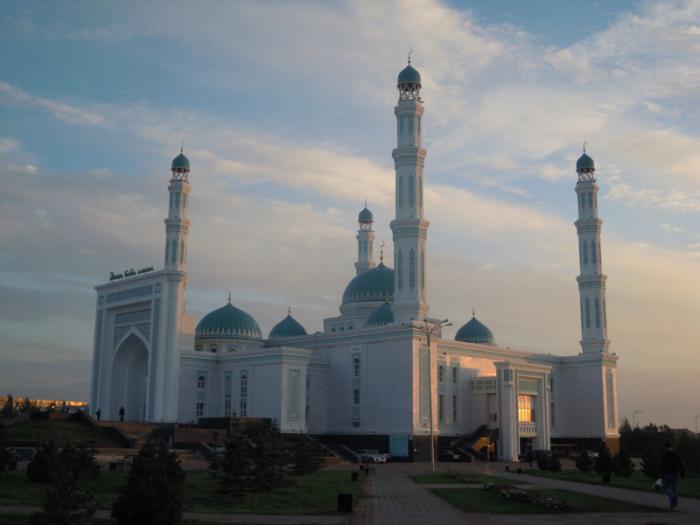 Центральная мечеть города Алма-Ата. Построена на месте старой мечети, функционировавшей с 1890 года. Фундамент мечети был залит в 1993 году, однако строительство завершилось лишь в 1999 году.