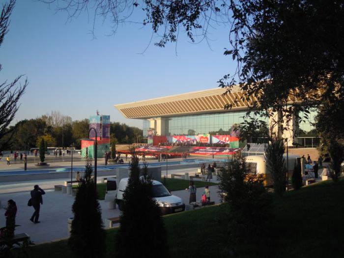 Вернулись в Алма-Ату и отправились на канатную дорогу. У нижней станции находится Дворец Республики (1971 г.), удостоенный Госпремии СССР, и в 1970-е годы восхищавший даже делегатов из Западной Европы. В 2010-11 годах — прошёл капитальную реконструкцию. У Дворца проходил концерт оркестров в рамках Фестиваля оркестров.
