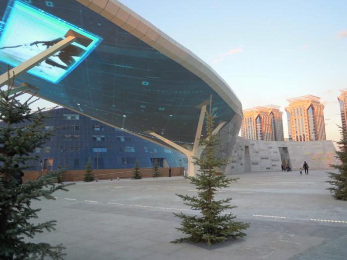 Беломраморная колоннада и стела, современные дворцы и музей олицетворяют всю мощь современного Казахстана.