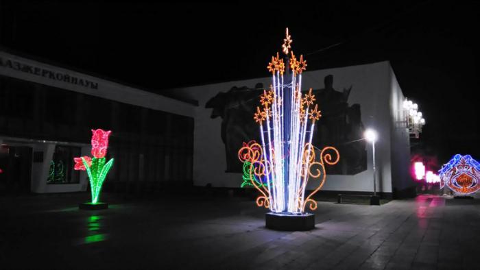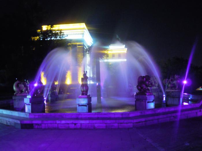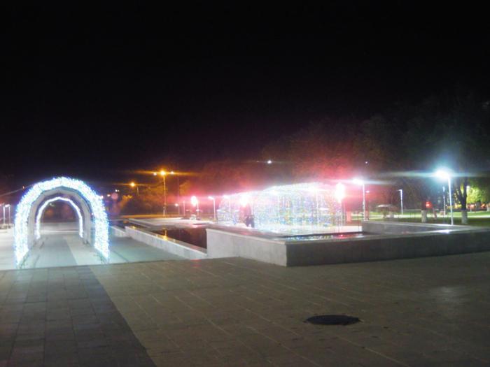 Вечером во многих более-менее крупных городах включается красивая подсветка. Световые скульптуры площади Независимости и Каскадной площади.