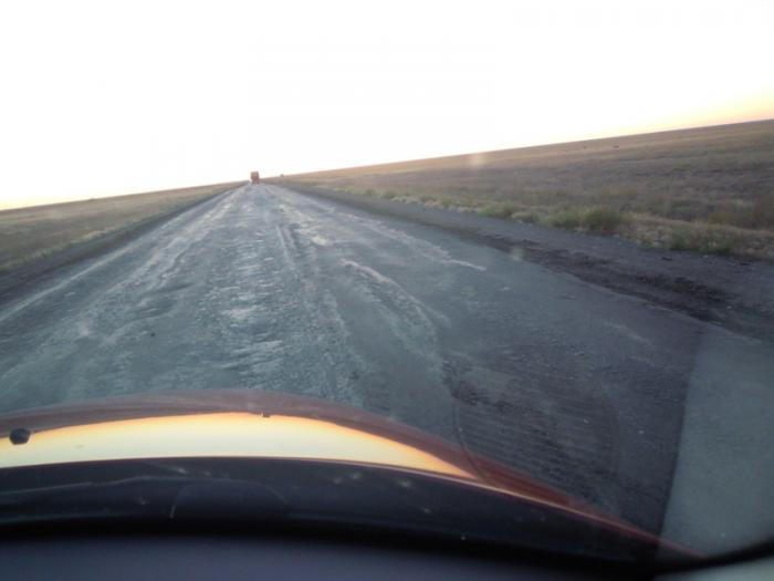 Это дорога на Балхаш и Караганду. И ТАКОЙ дороги было 200 км., проехали мы их за 4 часа.