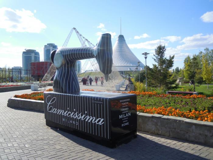 А эта швейная машинка символизирует, по видимому, Астану как „город моды“, так как сбоку наисаны мировые столицы моды.
