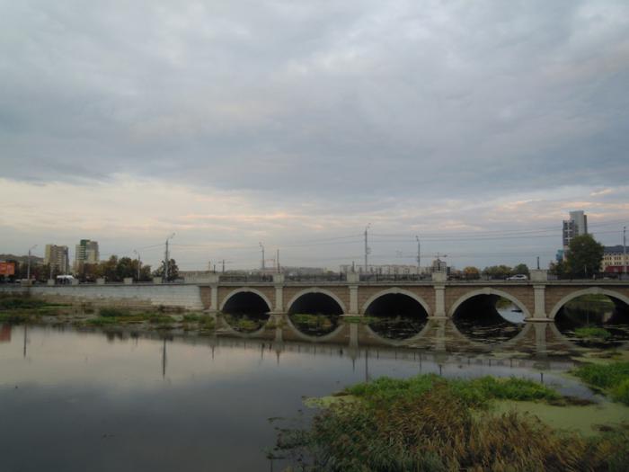 Челябинск при вечернем освещении показался нам «краше», чем днем. Днем все казалось каким-то серым, видимо, сказалось отсутствие солнышка. В 20.45 мы выехали из Челябинска, до следующего ближайшего города Миасс нужно было проехать всего 106 км. За час мы добрались. И практически сразу попали в центр «старого города».