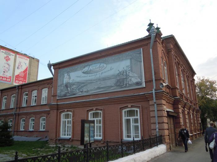 Курганский театр кукол «Гулливер». Это один из старейших кукольных театров страны. 12 августа 1943 года принято Решение исполнительного комитета Курганского областного совета депутатов трудящихся «О создании областного кукольного театра при концертно-эстрадном бюро Курганского отдела по Делам Искусств». Было поручено поставить к октябрю месяцу сразу 2 спектакля — для детей и для взрослых. Основателем театра стала московская актриса, оказавшаяся в Кургане в эвакуации — Аристова Ольга Леонидовна, которая весной 1944 года вернулась в Москву. В 1943—1947 годах кукольники выступали в составе концертно-эстрадных бригад (КЭБ) с небольшими эстрадными номерами. Состав бригад за сезон неоднократно переформировывался и вместе с вокалистами и музыкантами кукольники переходили из одной бригады в другую, не имея возможности собраться всем вместе. В 1948 году приказом по Курганскому отделу искусств в очередной раз переформированы КЭБы и все кукольники собраны вместе в один театр. C 1976 года театр называется «Гулливер». В октябре 1984 года «Гулливер» переехал в старое здание концертного зала. У театра появилась своя сцена. С 1990 года театр расположен в данном здании (на фото).